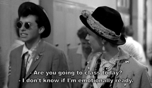 6) Get dressed. This again may seem obvious, but it can be very tempting to just spend the day in pajamas when you don’t have to leave your room for class. This may be just fine on your days off, but I’ve always considered pajamas to be a state of mind. Much like being in bed, wearing pajamas tells you that you’re going to be relaxing (and even taking a nap). If you get dressed, it helps establish a normal routine and tell yourself firmly that you’re going to work now. Personally, I’ve never had much success trying to nap in skinny jeans.